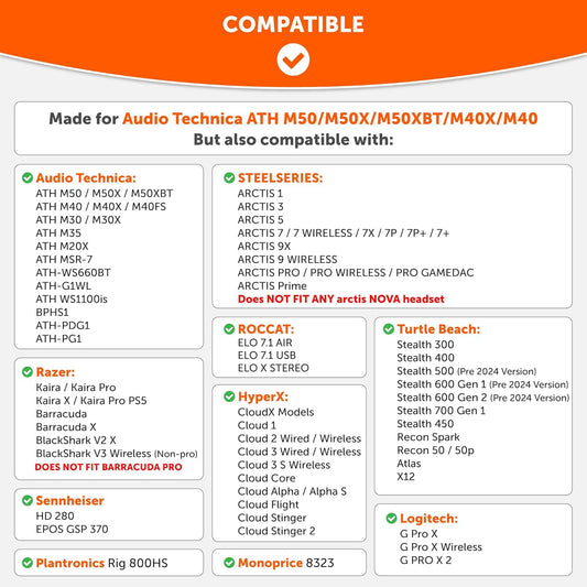 Wicked Cushions Velour Replacement Earpads for ATH M50X - Compatible with ATH M40X / M50XBT / Hyperx Cloud 1 & 2 / Steelseries Arctis 3/5 / 7 / 9X & Pro/Stealth 600 & More (Black)